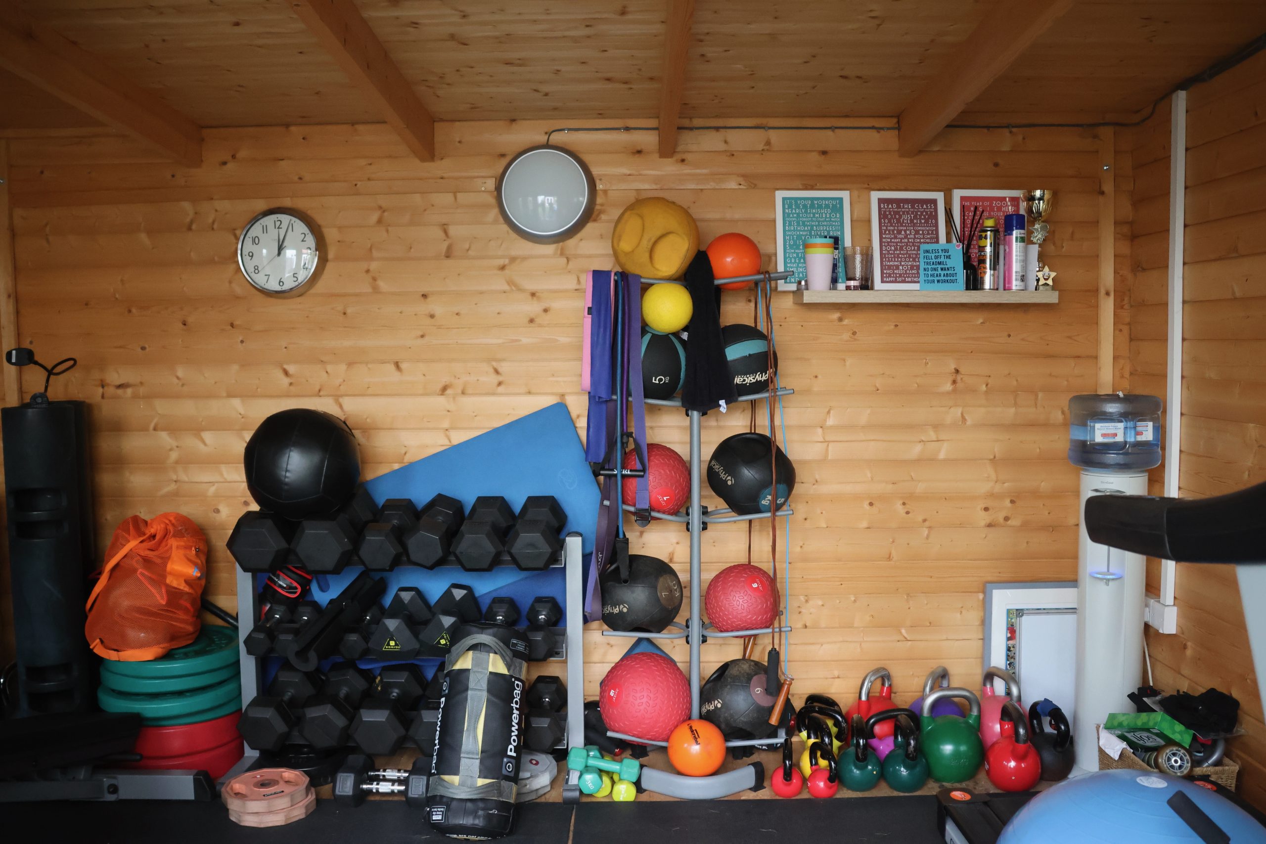 In my home gym, I’ve created a versatile studio catering for all fitness needs. It features a range of dumbbells from 3kg to 30kg, along with an assortment of fitness tools like medicine and slam balls, kettlebells, power bags, an Olympic bar, and a Hex bar to cater to your strength, cardio and core needs. I incorporate bodyweight exercises using TRX and resistance bands, while also incorporating cardio through spinning and treadmill sessions for a well-rounded fitness routine. And for an unbeatable cardio workout, I turn to boxing!